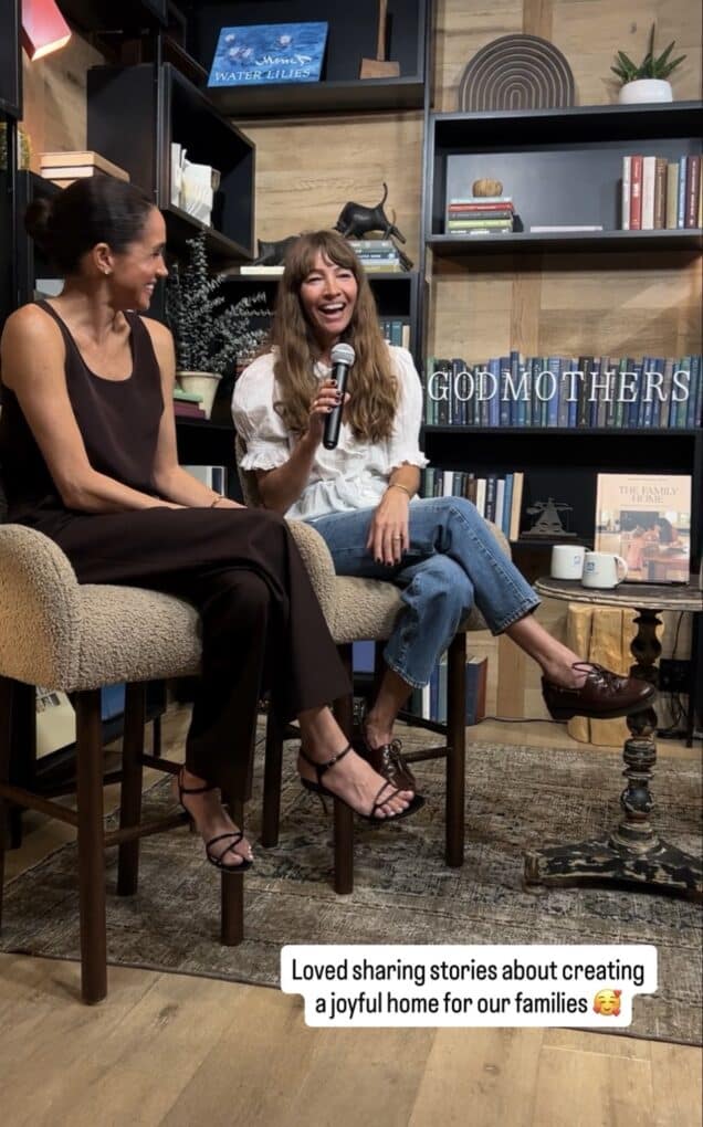 The Duchess of Sussex brought the fall feels in a chocolate brown ensemble at her local bookstore, Godmothers. Appearing at the charming farmhouse-style store and gathering space only five miles south of Santa Barbara, Meghan was dressed to impress as she sat beside fellow Northwestern alum and sorority sister Courtney Adamo for a discussion focused on “The Family Home.”